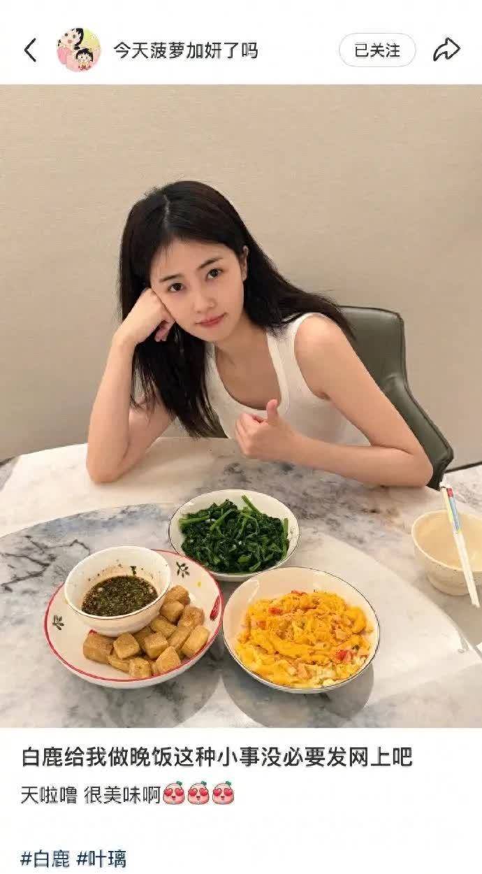一则看似寻常的晒饭动态,揭开了内娱一段被粉丝津津乐道的“神仙友谊”。4月21日,演员白鹿的助理兼闺蜜“呵呵”在社交平台晒出家常晚餐,并配文:“白鹿给我做晚饭这种小事,没必要发网上吧;天啦噜,很美味啊。”照片中,白鹿身穿睡衣、完全素颜,面前摆放着她亲手烹制的炒菠菜、炒蛋等简单菜肴,氛围温馨如自家姐妹小聚。网友在评论菜品“看起来好好吃”之余,更将焦点投向了这对超越了寻常雇佣关系的搭档——她们用十年时间,书写了一段从地下室共苦到星光下同甘的动人故事。